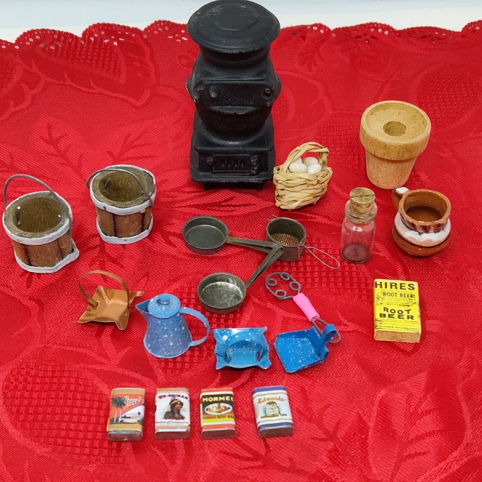 Vintage Misc Doll House Accessories Bucket Supplies Cast Stove 20 Pcs Ebay